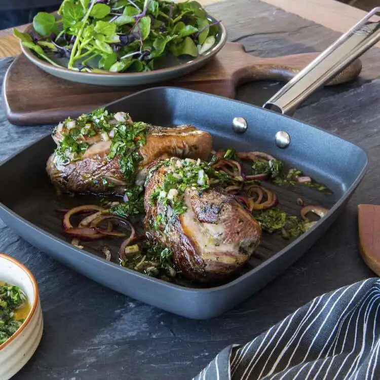 The Anolon Professional 24cm Square Grill is expert quality non-stick at its highest performance for your kitchen. Featuring a durable heavy gauge hard anodised body, this means it is twice as hard as stainless steel, heats quickly and evenly for superior cooking performance in your kitchen. Its sophisticated design means that its stainless steel handle ensures an ergonomic and secure grip when carrying a pan full of your delicious food to a dining table, and you can count on easy cleaning as this beautiful pan is dishwasher-safe. Suitable for kitchen hobs except induction. Shop the Anolon range today at Harris Scarfe!