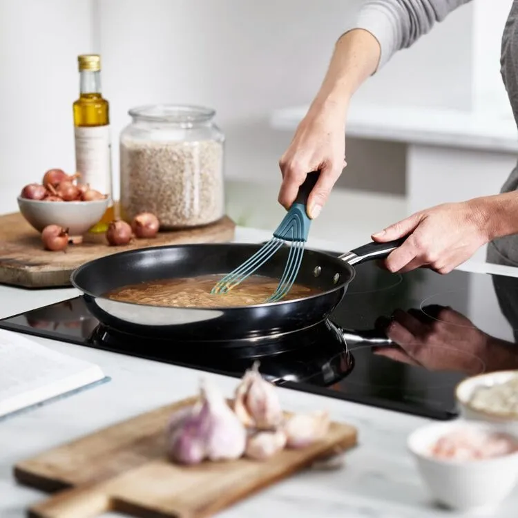 With a simple twist of the handle, this clever Joseph Joseph Twist Whisk design switches between two different types of whisks. In its closed or flat position, it’s ideal for stirring sauces or making gravy as its heat-resistant, silicone-coated stainless-steel wires are perfect for scraping and combining ingredients. In its open position, it becomes a conventional balloon whisk that’s perfect for whipping cream or beating egg whites into peaks. Suitable for Non-stick cookware, it also folds flat for compact storage. Silicone wires are heat-resistant up to 200°C/392°F.