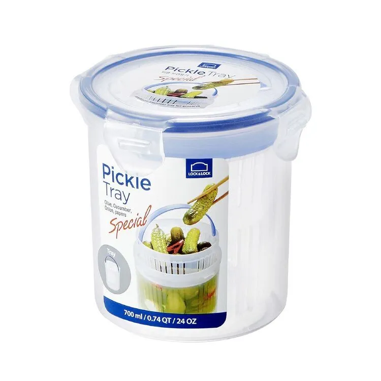 Keep your food fresher for longer with the Lock & Lock Round Container With Draining Basket 700mL, with an innovative space-saving design perfect for busy kitchens! The Lock & Lock round container features a four hinge locking system with a silicone seal to lock in freshness and flavour. Impact, scratch, heat and stain resistant material ensures the containers are long-lasting and ideal for transportation.