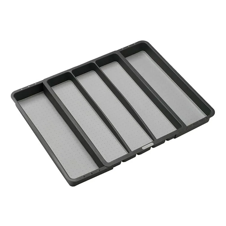 The Madesmart Expandable Utensil Tray Granite is great for organising kitchen utensils or cutlery. It has 5 compartments for easy organisation and can expand to fit in any kitchen drawer. Items stay in place thanks to a soft-grip lining and Non-slip rubber feet. The tray is made from high-quality, BPA-free plastic for long-lasting organisation.