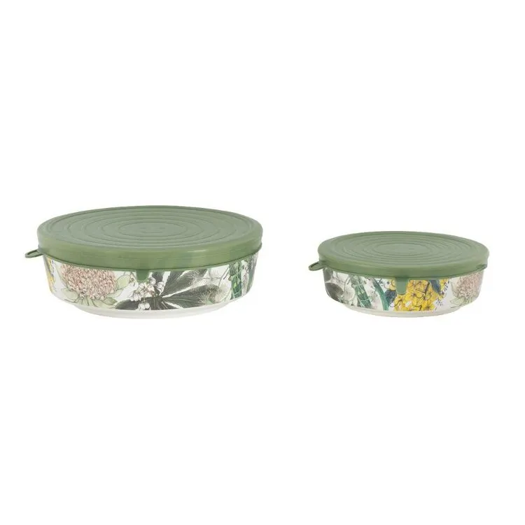 Get ready for summer with the Maxwell & Williams Golden Summer Bamboo Covered Bowl 2 Pack. Created in collaboration with Sydney artist ‘the Blck Pen’, these bowls feature a contemporary floral design. Made from lightweight, durable bamboo fibre, these versatile bowls come with a flexible cover to keep contents covered and secure – making picnics and packed lunches easier to prepare for.