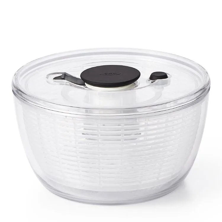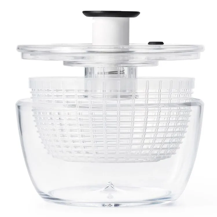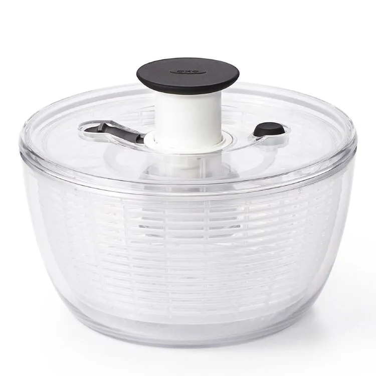 The OXO Good Grips Little Salad & Herb Spinner is the quick and easy way to dry a single serving of salad or a handful of herbs. For clean, dry ingredients, just press the soft, non-slip knob. The spinning basket doubles as a colander, so you can rinse lettuce and more with ease. The non-slip base prevents skidding, and the patented built-in brake button stops the Spinner on a dime for unloading. Toss and serve your salad right in the bowl with the OXO Good Grips salad & herb spinner.