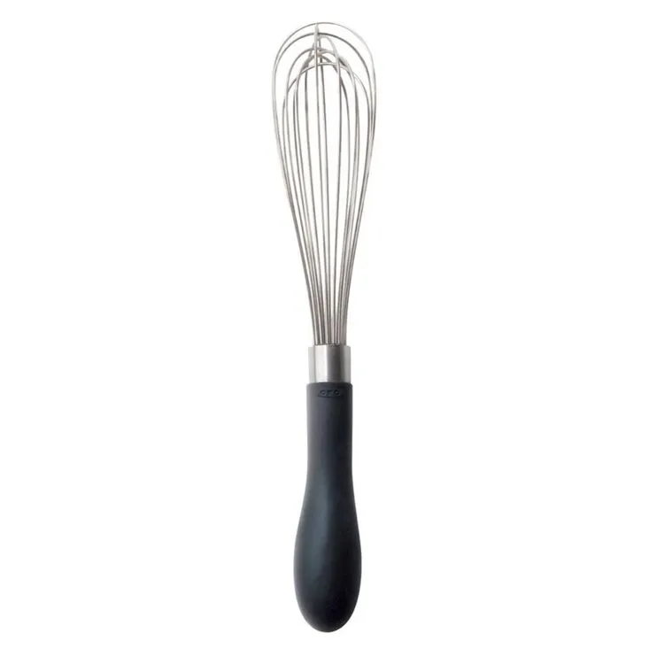 Beat eggs, stir batter, whip cream and stir sauces with ease. The OXO Good Grips Whisk features polished stainless steel wires and teardrop-shaped handles that fit comfortably in the palm of your hand.