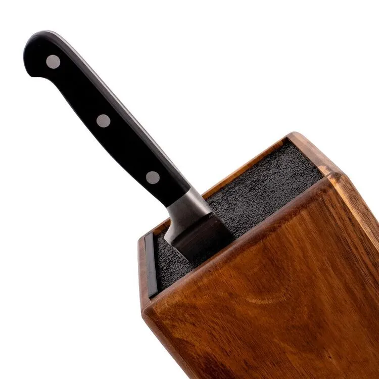 The Peer Sorensen Intelligent iBlock is an empty knife block. It is brilliantly designed from acacia wood material with polypropylene straw strips that fit neatly into the block meaning you can place 6 kitchen knives wherever you want. Organize your kitchen knives with this iBlock from Harris Scarfe