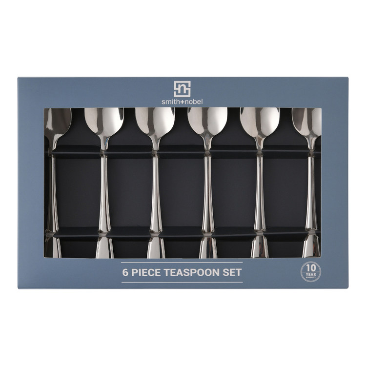 Enjoy delicious meal after delicious meal with this Smith & Nobel Mayfair 6 Piece Teaspoon Set. With its stainless steel body, crafted for comfort, and a sleek design, this cutlery set is a must-have for any modern home. Smith & Nobel cutlery is made from high-quality stainless steel, which will retain its shine, shape and ease of use for years to come.