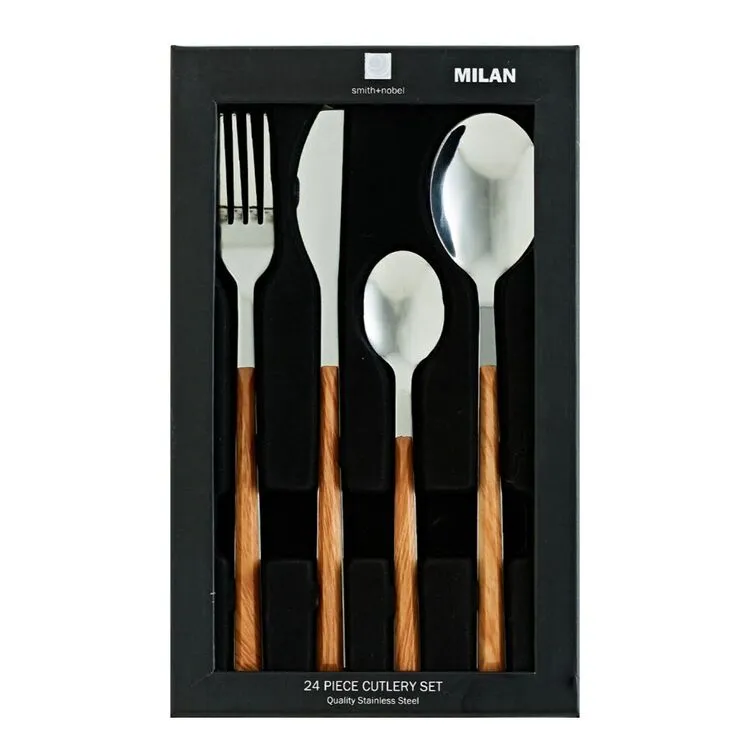 Be the first to review “Smith & Nobel Milan 24-Piece Cutlery Set Wood/Silver” Cancel reply