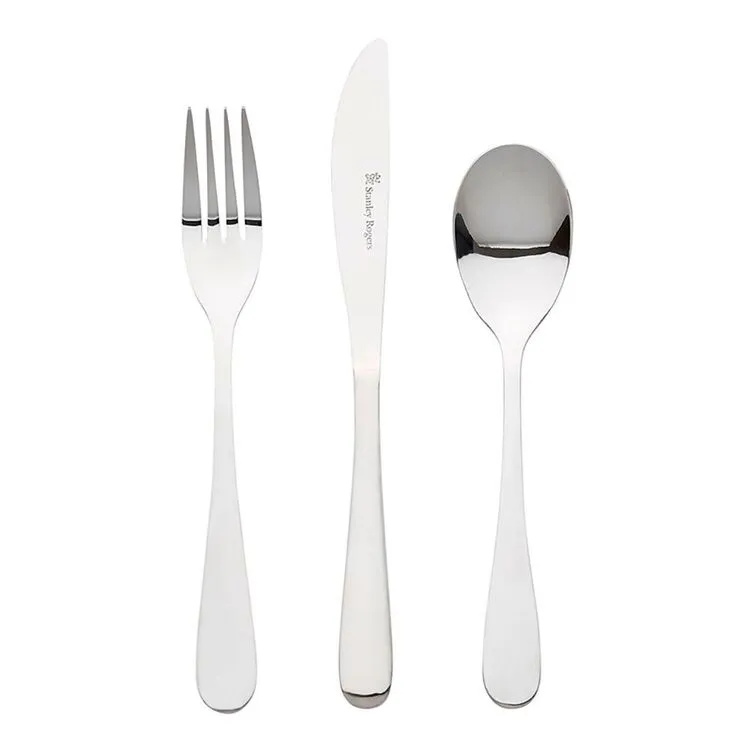 Set contains formal place setting for eight: 8 Dinner Knives, 8 Dinner Forks, 8 Entree Knives, 8 Entree Fork, 8 Dessert Spoons, 8 Soup Spoons, 8 Teaspoons