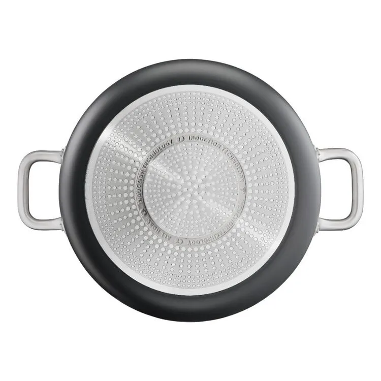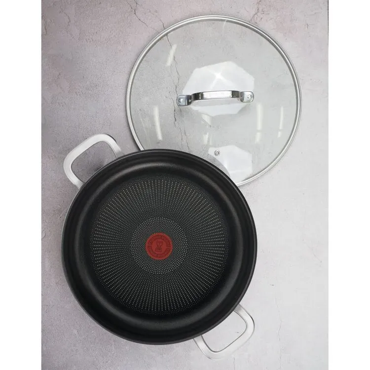 Cook meals to perfection with this 30 cm Tefal Premium Specialty Hard Anodised Induction Chef Pan with Lid. Thanks to a hard anodised construction and non-stick surface for easy cooking and cleaning, Tefal’s Premium Specialty Hard Anodised range is regarded as a high quality choice fit for beginners and experienced chefs alike. Featuring a Thermo-spot which lets you know it’s time to cook, you’ll be mastering your culinary skills in no time. Find everything you need to make your kitchen experiences a breeze, in-store or online at Harris Scarfe.