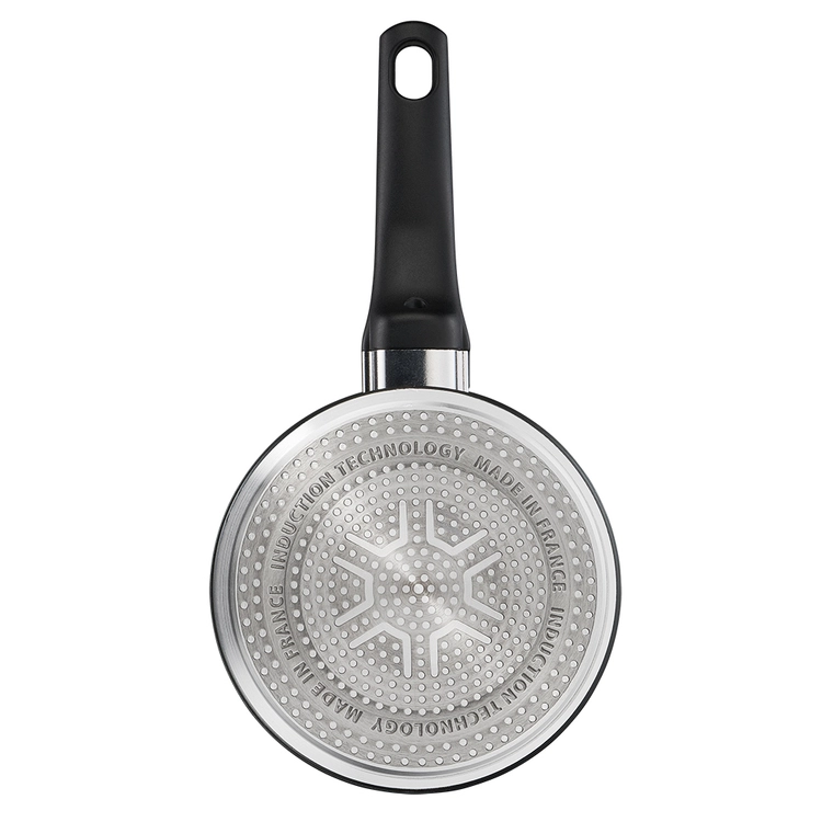 Tefal induction base ensures even heat distribution throughout the pan, with no hot or cold spots