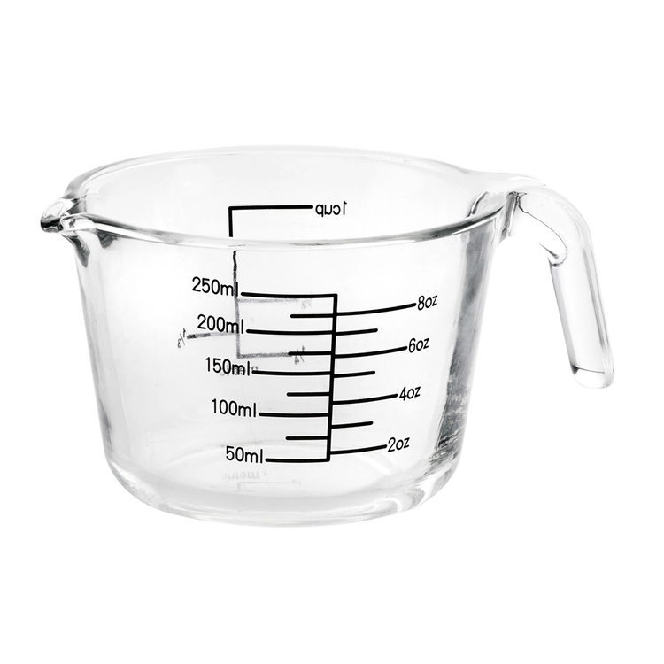 Take the guesswork out of that next bake with the Wiltshire Glass Measuring Jug 250mL. Ideal for all your kitchen needs, from sweet to savoury, cakes to bread, cookies to pies, our glass measuring jug will make sure that everything you make in the kitchen comes out perfect. The Wiltshire glass measuring jugs are made of high quality borosilicate glass to last you for years to come. And they are dishwasher, microwave and oven safe so you can melt butter, chocolate and more right in them. The ergonomic handle and pouring spout ensure easy and safe handling.