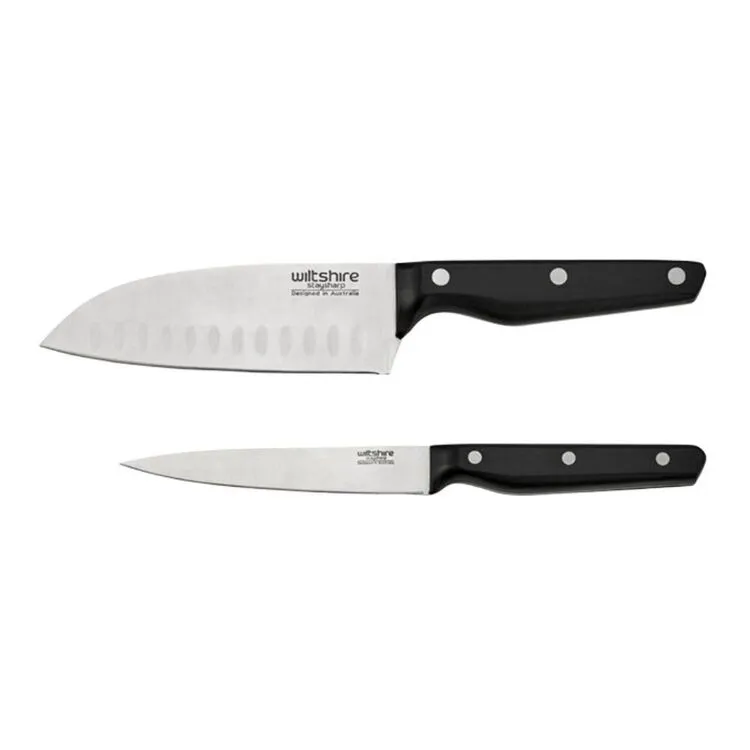 The ultimate pairing, the Santoku Knife is comfortable with mincing, slicing dicing or chopping – and the Utility Knife feels right at home cutting small fruit, vegetables and herbs.